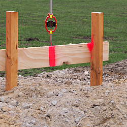 Durch eine Gebäudeabsteckung wird die Einhaltung der vorgeschriebenen Grenzabstände und anderen planungsrelevanten Vorgaben gewährleistet. Von dem geplanten Bauvorhaben werden die Gebäudeecken auf dem Grundstück vermarkt, bzw. ist eine Übertragung der Absteckung auf Schnurgerüsten möglich. Die Leistungen werden in einem Absteckprotokoll dokumentiert.